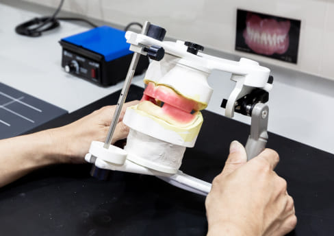 ご納得いただいた治療計画に基づいて治療を開始します。院内技工所と連携し、精密な入れ歯を製作します。新規の入れ歯製作には通常2ヶ月程度かかります。