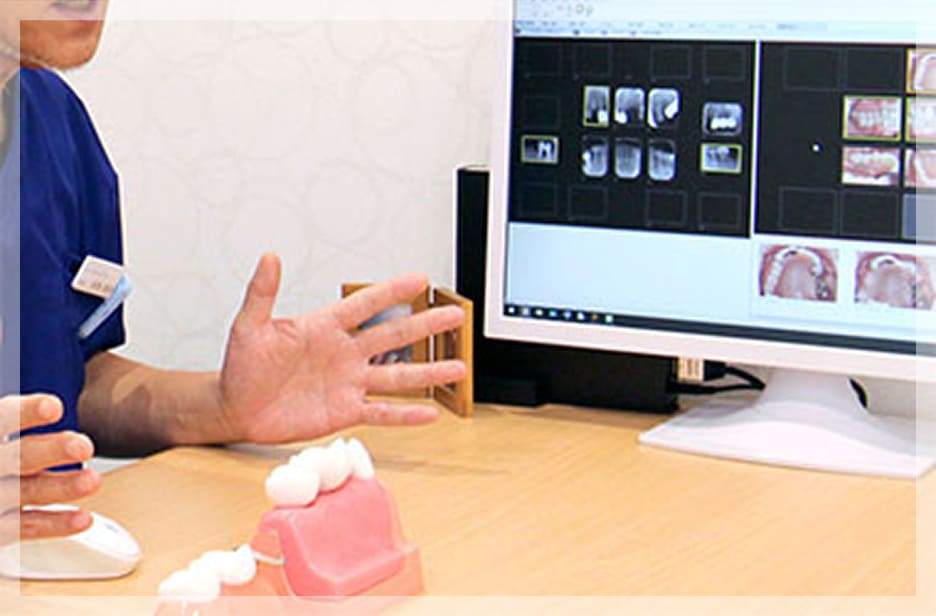 お口の状態を総合的に確認して、改善に向けた治療をご説明します。